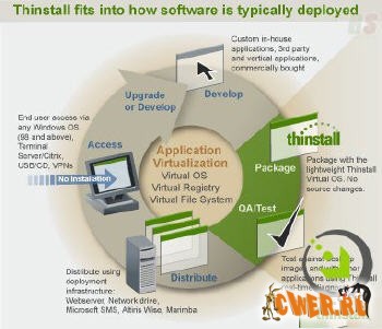 Thinstall Virtualization Suite Package Editor v2008.01.25.23.30 - один из самых мощных в мире пакетов для виртуализации приложений. С помощью этого средства Вы сможете из обычного приложения легко и просто сделать portable-версию, которая запускается допустим с флешки, не требует никаких прав в системе и не изменяет ни единого файла/ключа реестра. В принципе большая часть portable-софта и создано с помощью него.
