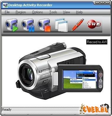 Программа позволяет записывать всю деятельность, происходящую на мониторе, в видео-файл AVI или флэш (SWF). Desktop Activity Recorder позволяет записывать любые действия - весь рабочий стол, окна, меню, курсоры, и даже видео со звуком. С помощью этой утилиты можно демонстрировать особенности работы программ, создания видео-уроков по каким-либо темам и т.д.
