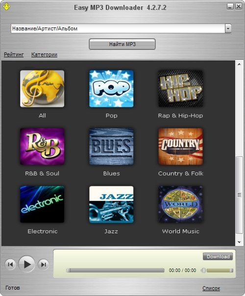 Easy Mp3 Downloader – простая и полезная утилита для поиска и загрузки музыкальных файлов. С помощью данного приложения из Интернета можно скачать бесплатную музыку. Приятный интерфейс не причиняет ни малейшего неудобства при использовании. После установки и настройки Интернет-доступа (при наличии межсетевого экрана), программа сразу готова к выполнению своих функций.