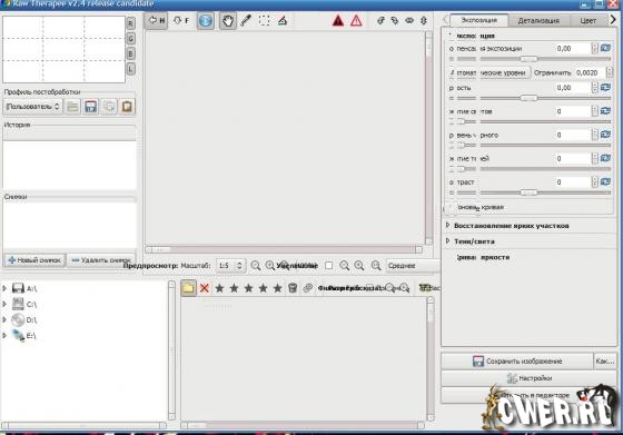Программа для работы с фото, в том числе в RAW-форматах. Фактически RawTherapee это бесплатный аналог Photoshop Lightroom.
