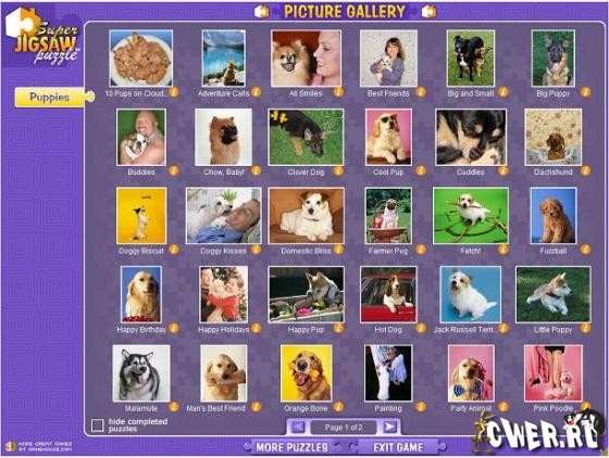 Продолжаем коллекцию паззлов от GameHouse. В этой подборке пазлов Вас ждут 74 увлекательных фотографии "братьев наших меньших".