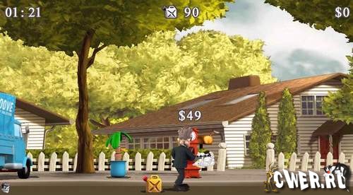 Игра из разряда "Как достать соседа". Бывший муж мистер Смит ходит с бензопилой по кварталу круша мебель которую вывозит бывшая жена. В общем типичная история при разводе, один пытается забрать всё а другой не отдаёт. Ваша задача состоит в том чтобы как можно больше уничтожить совместно нажитого имущества дабы оно не досталось бросающей вас жене. Спилите все деревья, уничтожьте стулья, светильники и прочую мебель, при этом не забывайте укрываться от жены, грузчиков и просто соседей, они будут защищать нажитое непосильным трудом имущество.По ходу игры не забывайте постоянно до заправлять свою бензопилу, нагибаясь к канистрам.