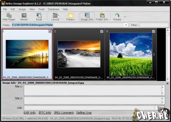 - IPTC & EXIF. Any IPTC or EXIF field can be embedded in the galleries and the Arles Image Explorer can sort on or show any of those fields in the grid. The IPTC editor allows editing IPTC information for multiple files.