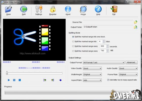 Allok Video Splitter is a powerful tool to split, cut or trim a large AVI, DivX, Xvid, MPEG, WMV, ASF, RM, MOV, FLV, 3GP or MP4 files into smaller clips in various format. The included video player and different splitting mode let you split or cut a movie file to smaller clips easily.You can even use it to convert a single file. Output format include AVI, MPEG I/II, VCD, SVCD, DVD, WMV, FLV, 3GP, MP4.