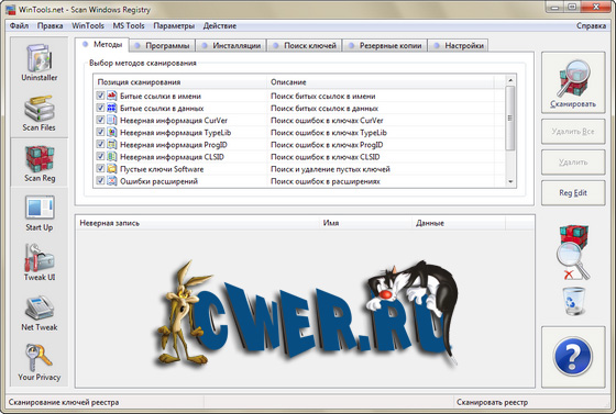 Scan Registry – инструмент для периодической очистки реестра Windows от неиспользуемых, оставшихся после деинсталляции приложений и неверных ключей, понижающих быстродействие и повышающих загрузку системы.