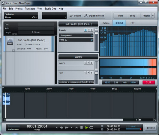 Studio One - приложение для создания музыки, которое делает звукозапись, MIDI-секвенсинг и аудио-мастеринг простым, предоставляя пользователю множество профессиональных функций. Программа снабжена не только всеми профессиональными функциями, которые могут встречаться в других аналогичных программах, но также новыми разработками, выделяющих Studio One от других подобных приложений. В основе работы Studio One лежит механизм автоматического переключения между разрешением вычислений 32 бит и 64 бит с плавающей запятой, которое происходит в реальном времени. Что позволяет получить отличное качество звука и совместимость с аудиоинтерфейсами ASIO, Windows Audio и Core Audio, включая всю линейку продукции PreSonus. Программа позволяет делать звукозапись и заниматься редактированием и сведением музыки в едином окне. Studio One поддерживает форматы плагинов ReWire, VST, AU, включая новую спецификацию VST3.