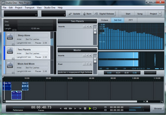 - Интегрированный пакет мастеринга с автоматическим обновлением микса, Red Book CD записью