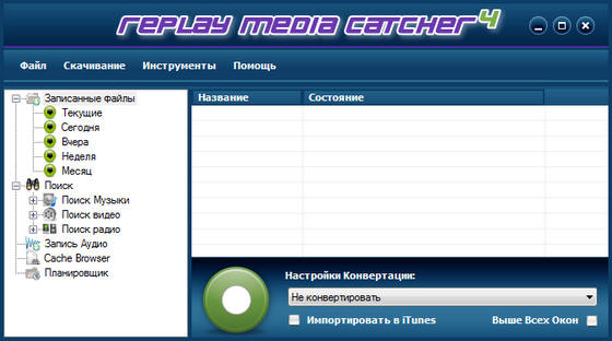 Replay Media Catcher позволяет пользователям захватывать отличные цифровые репродукции из различных источников, которые не дают записывать, таких как ABC.com, NBC.com, MySpace и сотнях тысяч других, как правило, популярных сайтов, таких как YouTube и Google Видео. Replay Media Catcher использует простой интерфейс записи «одного щелчка». Клиенты просто щелкают кнопку Начать Запись и потом воспроизводят потоковое флэш видео или MP3 аудио для захвата. Как только Replay Media Catcher обнаруживает медиа поток, он будет продолжать сохранение воспроизводимого видео или аудио файла на жестком диске компьютера и клиент может продолжать поиск в других медиа, для записи.