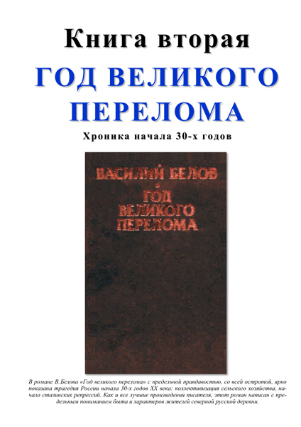 В.Белов написал не просто эпос, он вывел в нём художественные типы – а это высший пилотаж в прозе. И наконец, он разглядел религиозный, мистический смысл происшедшего, познал и раскрыл нам глаза на «тайну беззакония», которая, как известно, и сейчас в действии.
