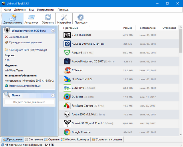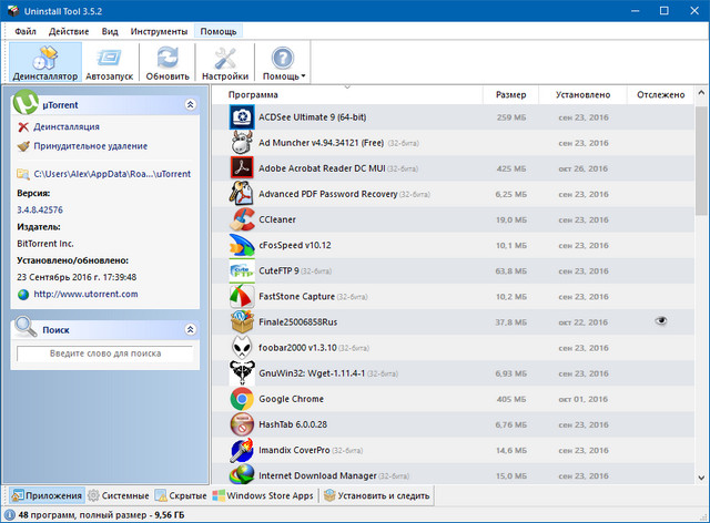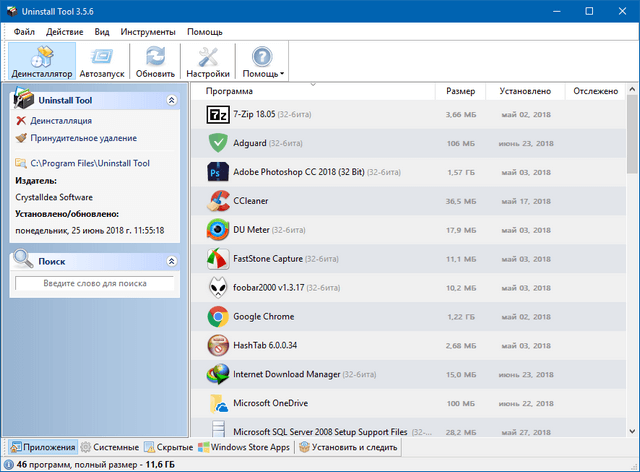 - Просмотр детальной информации о любой программе, установленной на вашем компьютере