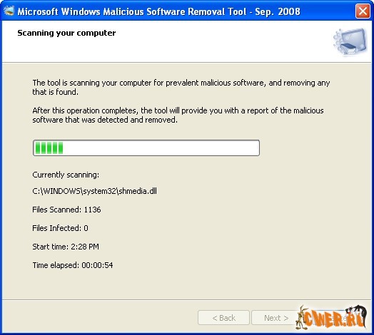Утилита для обнаружения и удаления наиболее распространённых вирусов. Microsoft Malicious Software Removal Tool выполняет проверку компьютера на наличие наиболее распространенных вредоносных программ (включая Blaster, Sasser и Mydoom) и удаляет их в случае обнаружения.
