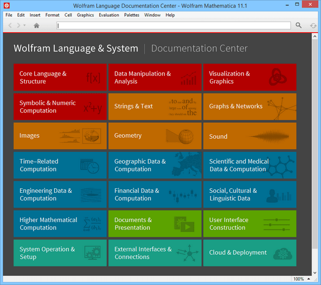 - Вычисление. Будь то для численных вычислений с произвольной точностью, символьных вычислений или визуализации—система Mathematica является очень мощным вычислительным инструментом, используя общесистемные технологии для обеспечения надежности, простоты в использовании и производительности. Вычислительную силу системы Mathematica можно использовать непосредственно, в качестве орудия в какой-то инфраструктуре, или через автономное приложение, в которое она интегрирована.