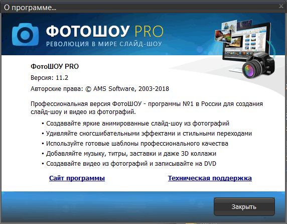 ФотоШОУ PRO - мощная программа для создания эффектных слайд-шоу и видеороликов из фотографий. Создавайте незабываемые слайд-шоу на любые темы: рассказы о путешествиях, праздниках, свадебные фотофильмы, Love Story и т.п. Программа включает сотни комбинаций эффектов анимации, позволяющих оживить любую фотографию. Вам точно не будет скучно.