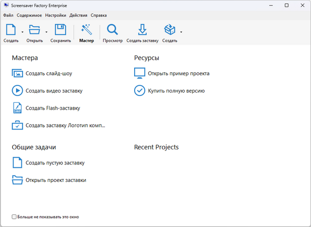 Blumentals Screensaver Factory Enterprise — программа для создания скринсейверов (screensaver). C её помощью Вы сможете создавать скринсейверы для себя, для рекламы и для коммерческого использования. Вы можете создавать скринсейверы из набора картинок, видео или флеш-анимации, с добавлением фоновой музыки и более 150 эффектов перехода. Screensaver Factory очень прост в использовании, он позволяет Вам создавать самостоятельные самоинсталлирующиеся скринсейверы и CD для простой установки и распространения.