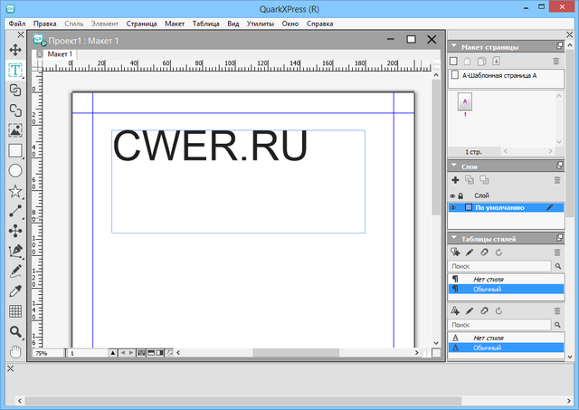 - интерфейс QuarkXPress имитирует фотонаборный процесс, где все параметры каждого элемента определяются заранее;