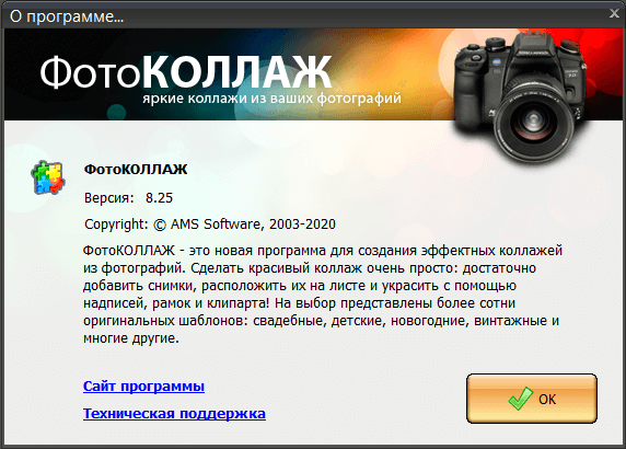 ФотоКОЛЛАЖ - поразительно удобная и легкая в работе программа от AMS Software для создания эффектных тематических коллажей, красочных поздравительных открыток, приглашений на свадьбу, постеров, стильных обоев для рабочего стола и даже оформления для вебсайта из Ваших фотографий. Множество доступных функций, богатейший выбор готовых вариантов оформления и клипарта, удобный интерфейс позволят реализовать самые смелые и невероятные идеи, откроют безграничные возможности для Вашей творческой самореализации! При помощи коллекции тематических шаблонов создать выразительный коллаж можно всего за несколько минут. На выбор представлены более сотни оригинальных шаблонов: свадебные, детские, новогодние, винтажные, абстрактные и многие другие. Экспериментируйте, применяйте самые невероятные варианты и сочетания, и Вы сможете оформить такие коллажи из фотографий, о которых всегда мечтали.
