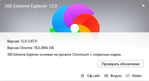 360 Extreme Explorer - веб-браузер на базе Chromium от китайского вендора Qihoo 360. Предлагает облачные функции и синхронизацию с аккаунтом 360 account, широкий спектр настроек и возможностей, включая защиту от фишинга. Весьма шустрый даже на слабых компьютерах. В отличие от последних версий Google Chrome, работает на XP/Vista, поддерживает NPAPI и отключает DirectWrite.