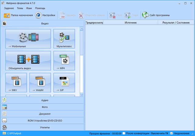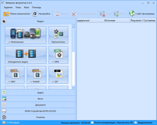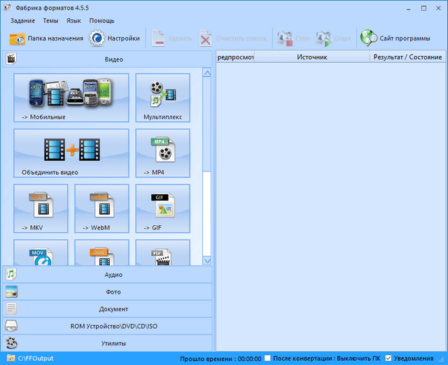 - Конвертирование всех популярных форматов видео, аудио и изображений