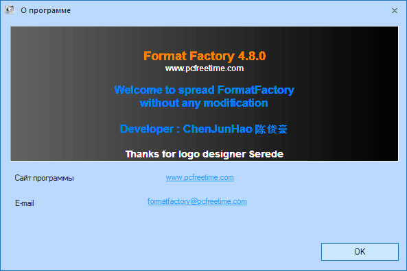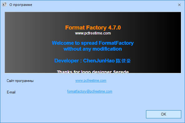 FormatFactory - многофункциональный конвертер различных файлов мультимедиа. Имеет ряд дополнительных функций, превращающих FormatFactory в универсальный инструмент для работы с мультимедийными файлами разных форматов. Поддерживается конвертация популярных видеоформатов в MP4, 3GP, MPG, AVI, WMV, FLV, SWF, а также конвертация аудиоформатов в MP3, WMA, MMF, AMR, OGG, M4A, WAV. В FormatFactory есть функция преобразования изображений в форматы JPG, BMP, PNG, TIF, ICO, GIF, PCX, TGA. Среди дополнительных возможностей FormatFactory есть такие, как увеличение и вращение изображений, присвоение им тегов, а также восстановление поврежденных аудио и видеофайлов.