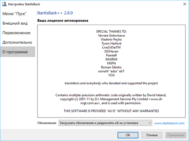 - StartIsBack: 1.7.6 (для Windows 8.1),