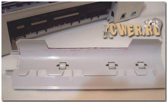 Удалить фрагмент задней стенки принтера, размером 120Х25 мм
