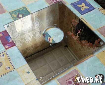 Это чертёж, по которому было вырезано зеркальное стекло. В середине я сделал отверстие для куллера.