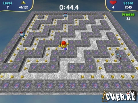 Добро пожаловать в Небесный лабиринт. Необычный 3D лабиринт и анимированные персонажи отличают этот римейк Пакмана от других аркадных игр. Проведите вашего героя через лабиринт и соберите все кристаллы, но будте осторожны: ваши враги попытаются остановить вас. Полная версия включает 80 лабиринтов с защитными щитами, бонусами заморозки, волшебными мостами и другими фичами. Вам понравятся эффекты и веселая музыка в игре. Выберите вашего героя для великого путешествия: Пак-боя или Пак-герл. Играйте уровень за уровнем, сражайтесь с врагами и побеждайте! Эта игра отлично сочетает элементы стратегии и классической аркады, требует хорошей координации. Чистое удовольствие для любителей аркад.