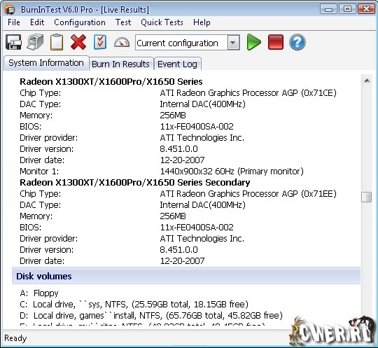 Passmark BurnInTest Professional - профессиональная версия программы для всестороннего и детального тестирования компонентов компьютера. Утилита тестирует скорость процессора, оперативную память, жесткие диски, CD/DVD приводы, звуковые карты, видеокарты, принтеры, сетевые соединения. BurnInTest Professional также может проводить тестирование последовательных (до 12 портов одновременно) и параллельных портов, портов USB (до 10 портов одновременно). Также в профессиональной версии имеются дополнительные параметры тестирования процессоров и видеокарт. После тестирования программа выдает отчет с найденными ошибками и нестабильностями. Идеально подходит для любителей разгона.