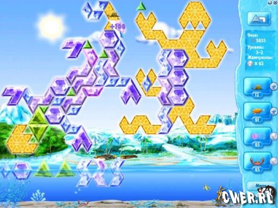 Оригинальная головоломка одновременно напоминает игры знаменитых и популярных жанров тетрис и маджонг. В этой игре вам предстоит ловить волшебные льдинки, падающие с неба, и складывать из них фигуры экзотических животных, чтобы освободить их из ледяной тюрьмы. Льдинки состоят из множества маленьких треугольников и имеют самую разную форму. Их можно поворачивать, чтобы разместить в подходящем свободном месте. Те кусочки льда, которые вы не успеете поймать, падают в море. Их всегда можно достать оттуда, но когда плавающих льдинок станет слишком много, — море замерзнет, и вы проиграете. Чтобы пройти игру, нужно сложить шестьдесят фигур.
