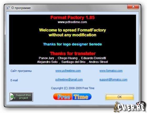 Скачать программу FormatFactory 1.85 (16,24 МБ):