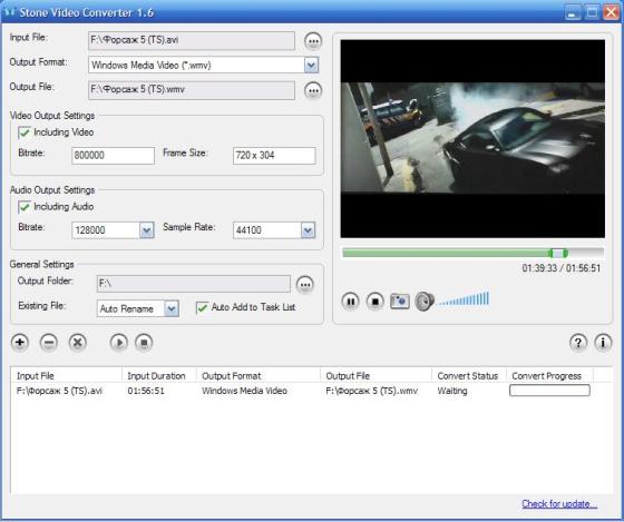 Stone Video Converter является простым, надежным и быстрым мультимедийным конвертером популярных видео и аудио форматов. Со Stone Video Converter, вам больше не придется беспокоиться о многочисленных видео и аудио форматах! Поддерживает преобразование почти во все известные видео форматы, включая IPod MPEG-4, iPhone MPEG-4, PSP MPEG-4, WMV Zune, Zune MPEG-4, WMV, ASF, AVI, DivX, XviD, MPEG-1 (VCD ), MPEG-2 (DVD), MPEG-4 (MP4), MPEG-4 AVC (H264), QuickTime MOV, Flash Video (FLV), RM, RMVB, Matroska (MKV), 3GP и 3G2 и т.д.