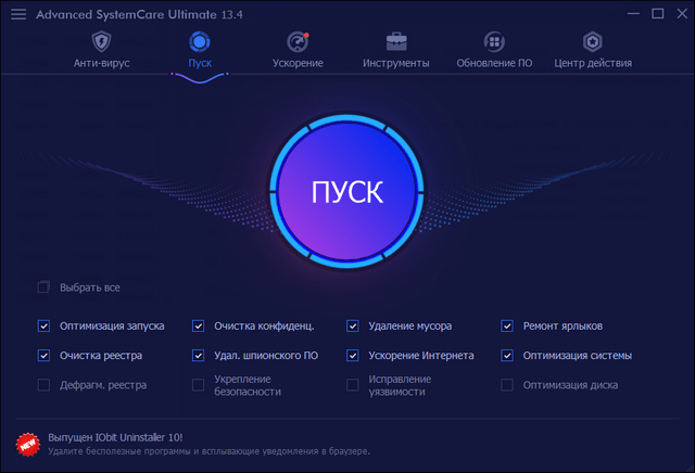 Advanced SystemCare - программный пакет, содержащий множество модулей для оптимизации, настройки и повышения производительности компьютеров, на базе ОС Windows 2000/XP/Vista/7/8/10. Приложение позволяет очистить компьютер от шпионского и рекламного ПО, найти и ликвидировать возможные угрозы и бреши в системе безопасности ОС, исправить ошибки в системном реестре, очистить временные и ненужные файлы, управлять списками автозагрузок, оптимизировать работу ПК.