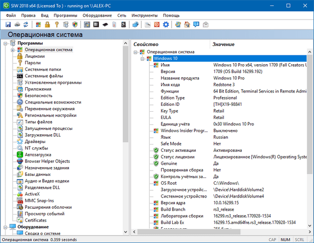 Небольшая утилита, сообщающая подробные данные об аппаратных средствах компьютера, установленном программном обеспечении, а также сетевую информацию. По своему функционалу SIW схож с популярной программой Everest, но, в отличие от нее, бесплатен (при некоммерческом использовании) и при этом содержит в себе несколько уникальных функций - для удаленного выключения\перезагрузки рабочей станции, взлома пароля Windows 9x, смены MAC-адреса сетевого устройства и некоторые другие.