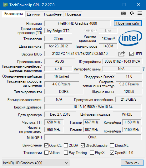 Cwer.ws представляет новую версию программы для получения сведений о графическом адаптере. GPU-Z поддерживает видеокарты NVIDIA и ATI. Утилита поможет определить, какая модель видеокарты установлена в вашем компьютере, узнать интерфейс подключения, расскажет о том, какой именно графический процессор используется (версия BIOS, номер ревизии чипа, частота в 2D, 3D-режимах и при разгоне, сведения о поддержке DirectX).