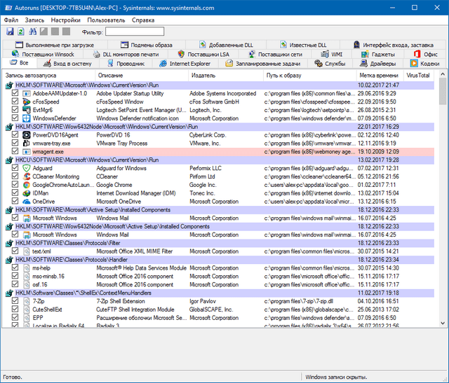 AutoRuns - утилита для контроля автозагрузки программ. Она позволяет увидеть, какие программы настроены на запуск в процессе загрузки или входа в систему, причем эти программы отображаются именно в том порядке, в каком система Windows обрабатывает их. Это относится к программам, находящимся в папке автозагрузки или прописанным в разделах реестра Run, RunOnce и других. Autoruns можно настроить на отображение и других расположений, таких как расширения оболочки проводника, панели инструментов, объекты модулей поддержки обозревателя, уведомления Winlogon, автоматически запускаемые службы и т.д. Приложение обладает расширенным функционалом по сравнению со служебной программой MSConfig, входящей в состав Windows Me и XP. Скачай бесплатно на Cwer.ws.