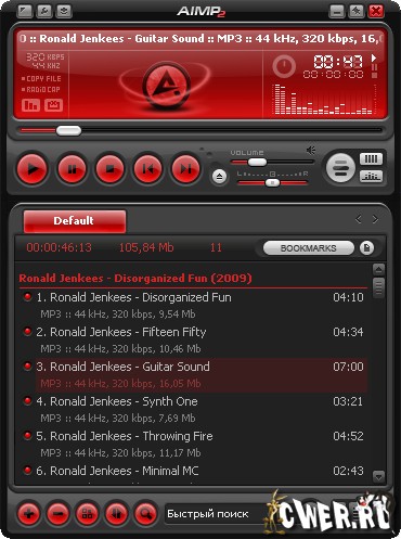 AIMP - это многофункциональный аудио центр. Благодаря встроенным утилитам, вы легко сможете перекодировать музыку из одного формата в другой, записать звук с микрофона или другого звукового устройства, отредактировать тэги музыкальных файлов, а так же группой переименовать или отсортировать их. AIMP2 базируется на известном аудио движке BASS - вы с легкостью можете подключить плагины от этой библиотеки к AIMP.AIMP - это отличный аудио плеер с поддержкой: скинов, многих музыкальных форматов и плюс, имеющий встроенные утилиты для работы со звуком. AIMP победил в «Софт года 2007» в номинациях «Интерфейс» и «Функциональность».