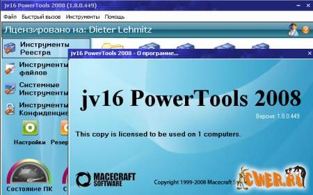 Вышла новая финальная версия программы jv16 PowerTools 2008, представляющей собой набор утилит для комплексной работы с реестром (очистка, правка, автозагрузка, установка/удаление, мониторинг системного реестра, поиск - замена), файлами (поиск дубликатов, органайзер файлов), очистка дисков и управление компьютерами в локальной сети. В отличие от более ранних версии в новой улучшен интерфейс, произведены различные оптимизации и доработки, добавлено несколько востребованных пользователями возможностей.