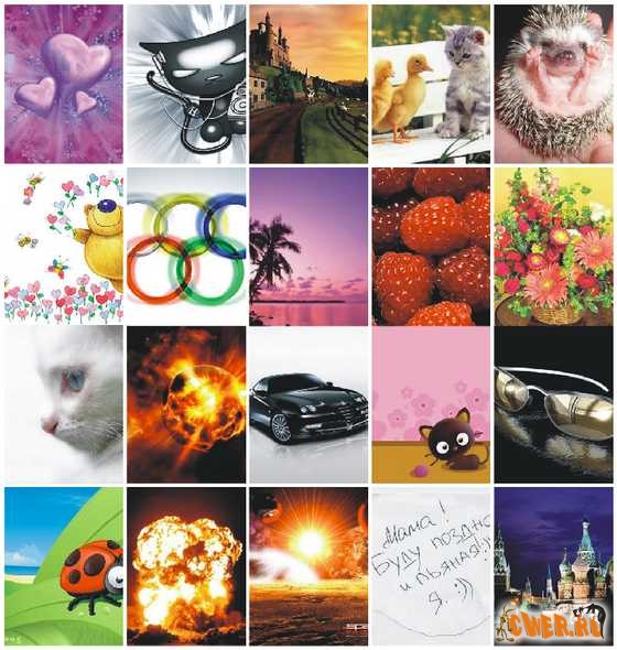 300 обоев для телефона, с размером экрана 240х320, отсортированы по трем разделам: деньги, машины, природа