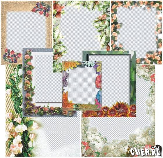 16 красиво оформленных цветами фоторамок в формате PSD (фотошоп), размером 2834х3543 пик, качеством 300 пикс/дюйм