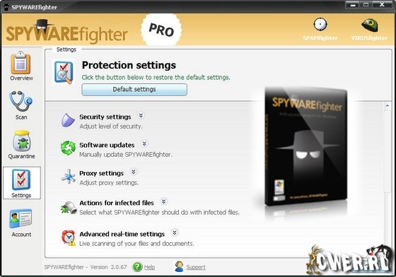 SPYWAREfighter - это программа для борьбы со шпионским софтом, которая сканирует более 22 тыс. различных угроз. Продукт защищает компьютер пользователя от шпионского и различного вредоносного софта.
