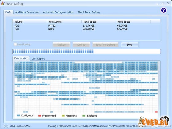 Обновился высокоскоростной дефрагментатор Puran Defrag, обладающий необычайно простым и удобным интерфейсом, а также некоторыми необычными функциями. Puran Defrag в отличии от большинства аналогов, позволяет дефрагментировать не только целый диск, но и отдельные его файлы и папки. Вызов дефрагментации файла может производится из контексного меню проводника. Просто нажимаем правой клавишей по необходимому файлу, выбираем меню "Puran Defrag" и программа переносит указанный файл в область более быстрого доступа за считаные секунды, повышая таким образом производительность системы.