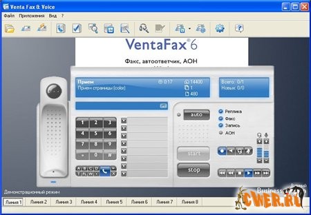 Программы серии VentaFax предназначены для приема и отправки черно-белых и цветных факсов, а голосовые версии дополнительно обеспечивают работу с голосовыми функциями модемов (программный автоответчик, АОН, рассылка голосовых сообщений, запись разговора…).