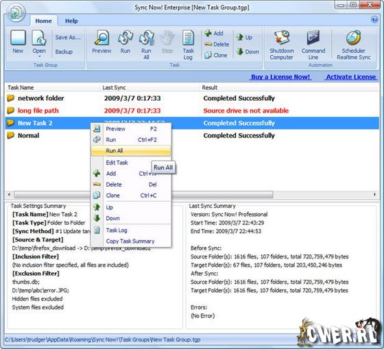Sync Now! очень простая в использовании и удобная программа для синхронизации папок на локальном и сетевых компьютерах, ZIP дисках, ноутбуках и т.д. Программа предлагает задать время автоматического сравнения данных или же указать интервалы времени, через которые оно будет производиться. Таким образом, теперь не нужно все время думать о резервном копировании данных – Sync Now произведет его автоматически и на высокой скорости.