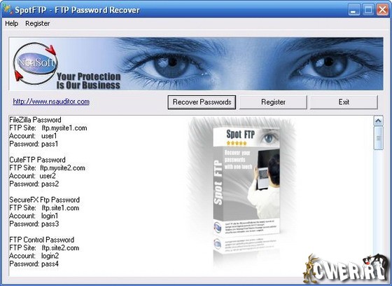 SpotFTP Password Recover является утилитой Windows, которая предлагает администраторам и пользователям всестороннее решение восстановления паролей FTP и другой важной деловой информации, сохраненной в компьютерах пользователей. SpotFTP восстанавливает FileZilla, WS_FTP, Far ftp client, CuteFTP, FlashFXP ftp, SecureFX ftp client, WebDrive, FTP Voyager, AutoFTP, 32bit FTP, FTP Now, FTP Navigator, CoffeeCup Direct FTP и FTP Control пароли. Если Вы забыли Ваши пароли или должны получить доступ к некоторым паролям или конфиденциальной информации, сохраненной на Вашем компьютере, SpotFTP может действительно помочь Вам сделать это.
