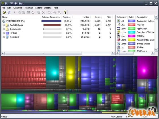 Программа наподобие Tree Professional, являющаяся анализатором свободного места на диске и его очистки. Бесплатна. Изначально предназначена для запуска с USB-накопителей и LiveCD.