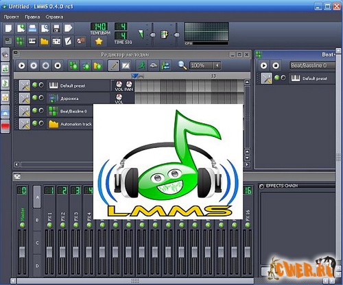 Программа (программный синтезатор) для Windows, альтернатива пакетам вроде проприетарных FruityLoops, Cubase и Logic, предоставляющая возможность написания собственной музыки на компьютере с помощью синтезирования звуков, размещения готовых образцов (сэмплов), наигрывания мелодии на миди-клавиатуре и многого другого… LMMS позволяет управлять шаблонами, лейтмотивами, создавать каналы для различных инструментов, подключать звуковые файлы с сэмплами. Русский язык поддерживается.