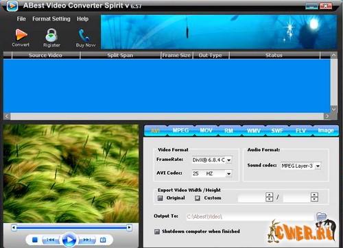 С помощью этой программы вы можете конвертировать видео файлы из одного формата в другой. Поддерживаются следующие форматы: AVI (DivX, XviD, MPEG-4...), MPEG (MPEG-1, MPEG-2), WMV/ASF, VCD/DAT и SVCD