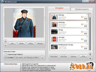 WinWatermark - программа для создания профессиональных водяных знаков. Программа позволяет добавлять текстовые и графические водяные знаки на любой фотографии, тем самым защищая ее от несанкционированного распространения.