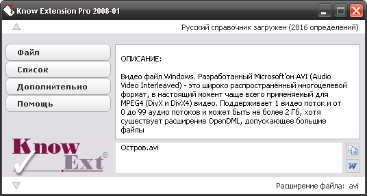 Назначение программы - определять тип файлов по их расширениям. Может быть полезна для любопытных начинающих пользователей, которые хотят узнать назначение того или иного файла, а также и для продвинутых пользователей, для создания собственной базы знаний по расширениям файлов, так как программа позволяет добавлять в базу новые данные.