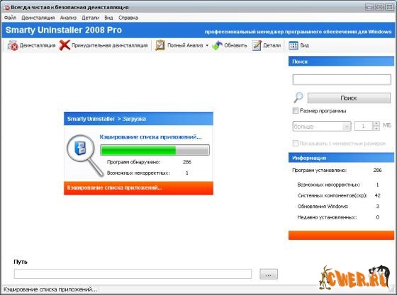 Smarty Uninstaller 2008 обеспечивает решение задач по деинсталляции приложений, установленных на вашем компьютере.